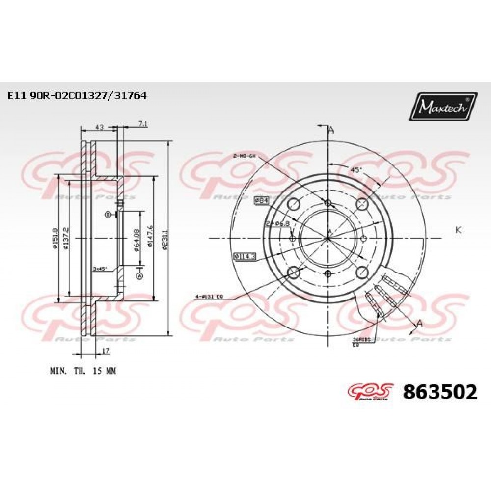 863502 MAXTECH Гальмівний диск