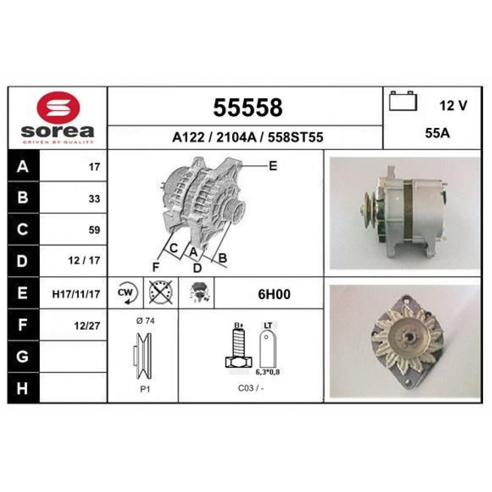 кабель зарядки від генератора (А) 55 А