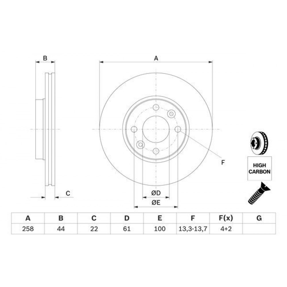 Зовнішній діаметр [мм] 258 мм