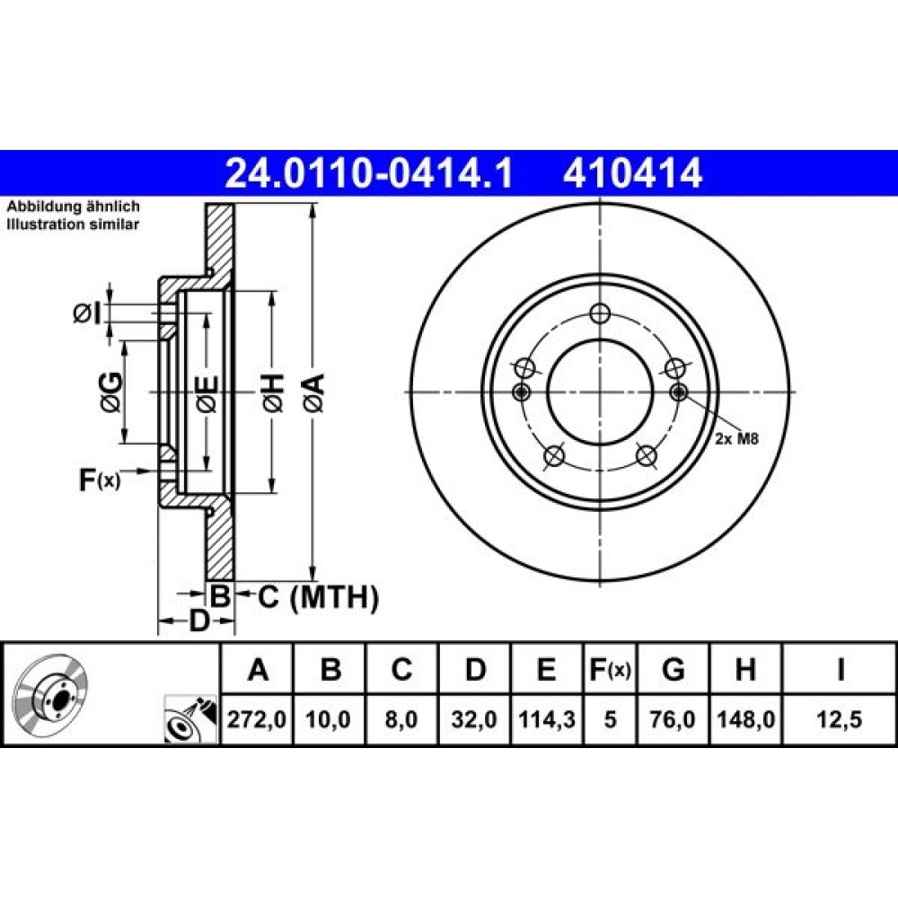 Переваги 24.0110-0414.1 ATE Гальмівний диск