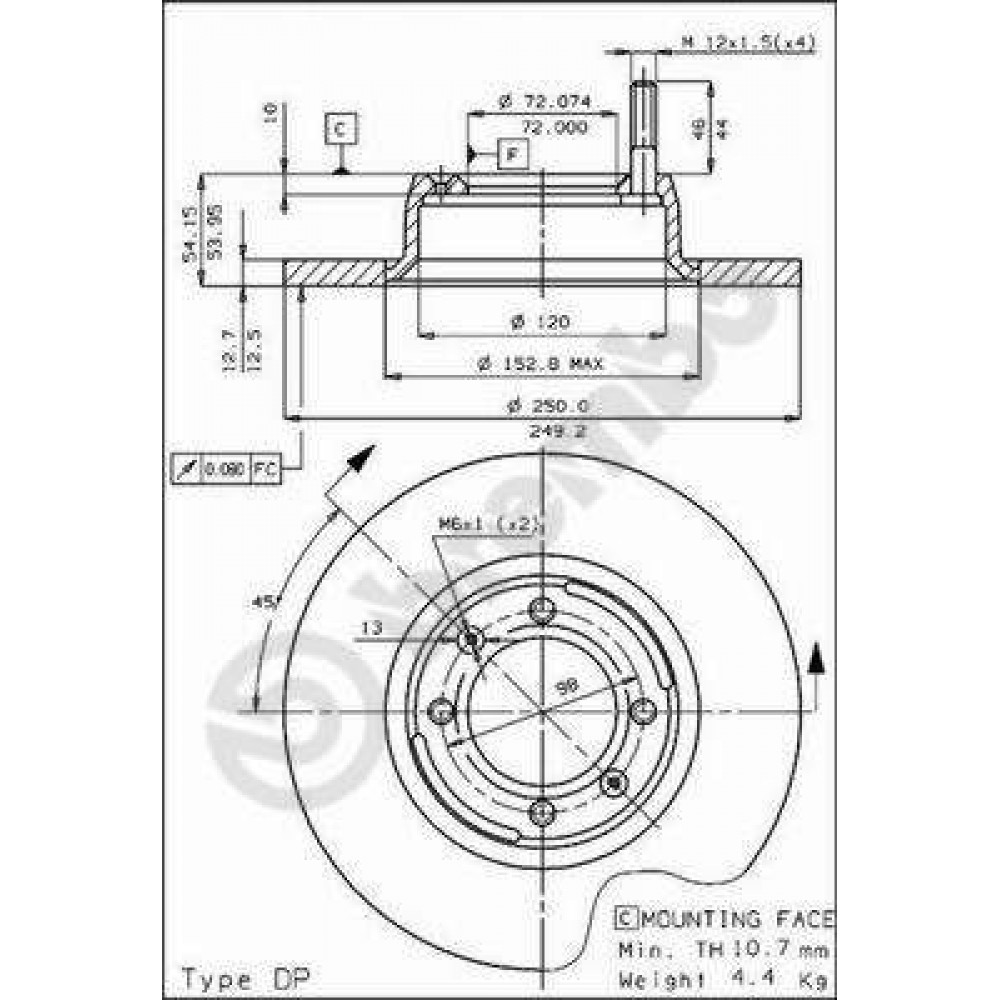 Товщина гальмівного диска (мм) 12,6 мм