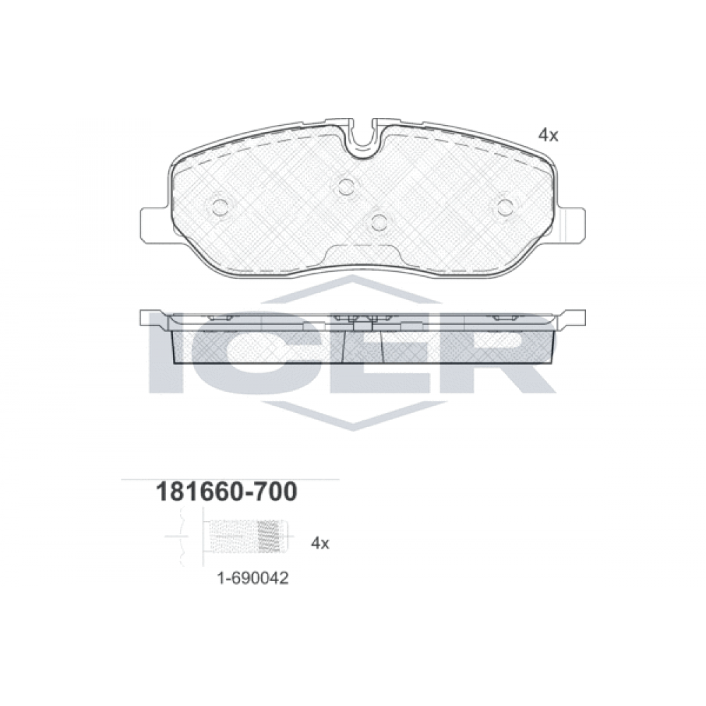 181660-700 ICER Комплект гальмівних колодок дисковий гальм